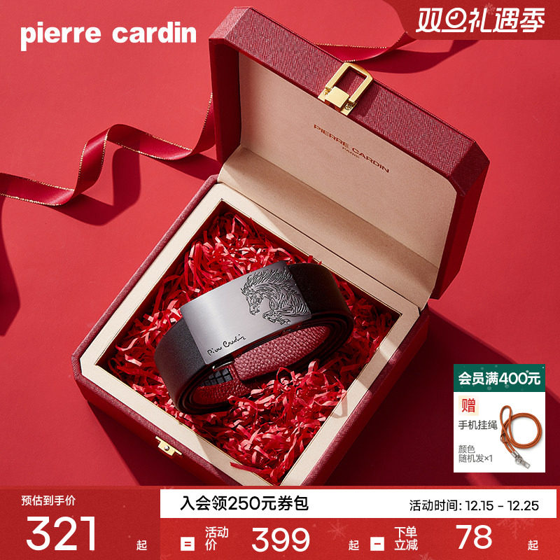 【Natal Year】Pierre Cardin Buckle Belt Men's Genuine Leather Red Belt Men's Wedding Gift Cowhide Pants Belt