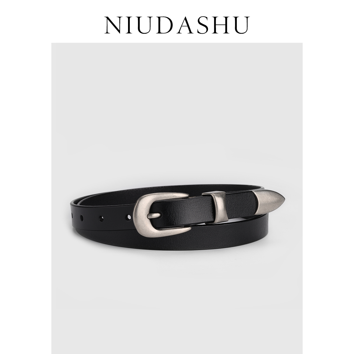 Autumn belt women's leather decoration niche solid pin buckle 100 matching jeans belt women's black men's and women's models look slim