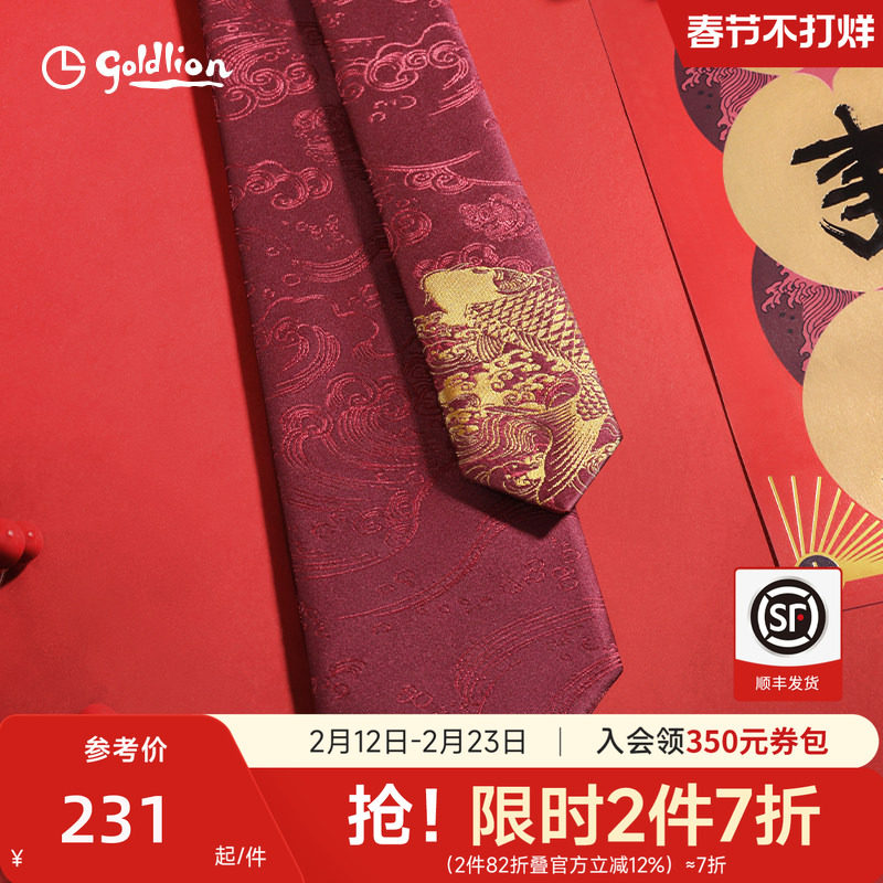 【Chinese style】Goldlion tie male high-end sense natal year koi wedding groom business tie gift box