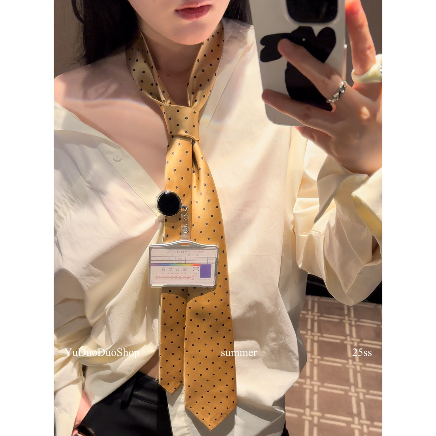 Fashionable smart bright yellow striped tie women's Japanese vintage preppy style scarf multifunctional hot girl decorative belt
