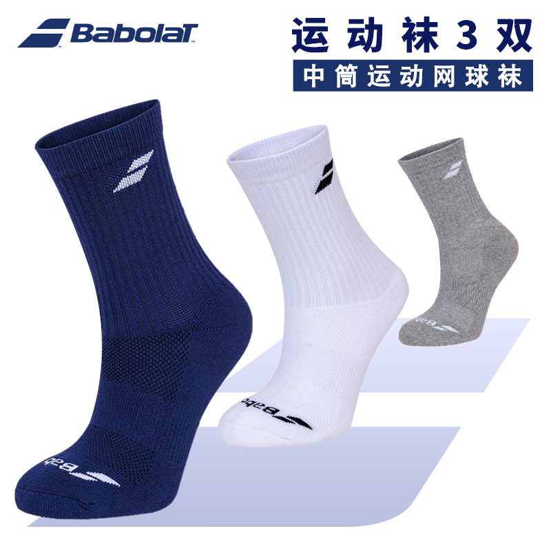 Babolat Sports Tennis Socks Men and Women Thickened Sweat Absorbent Breathable Towel Socks 3 Pairs Medium Socks