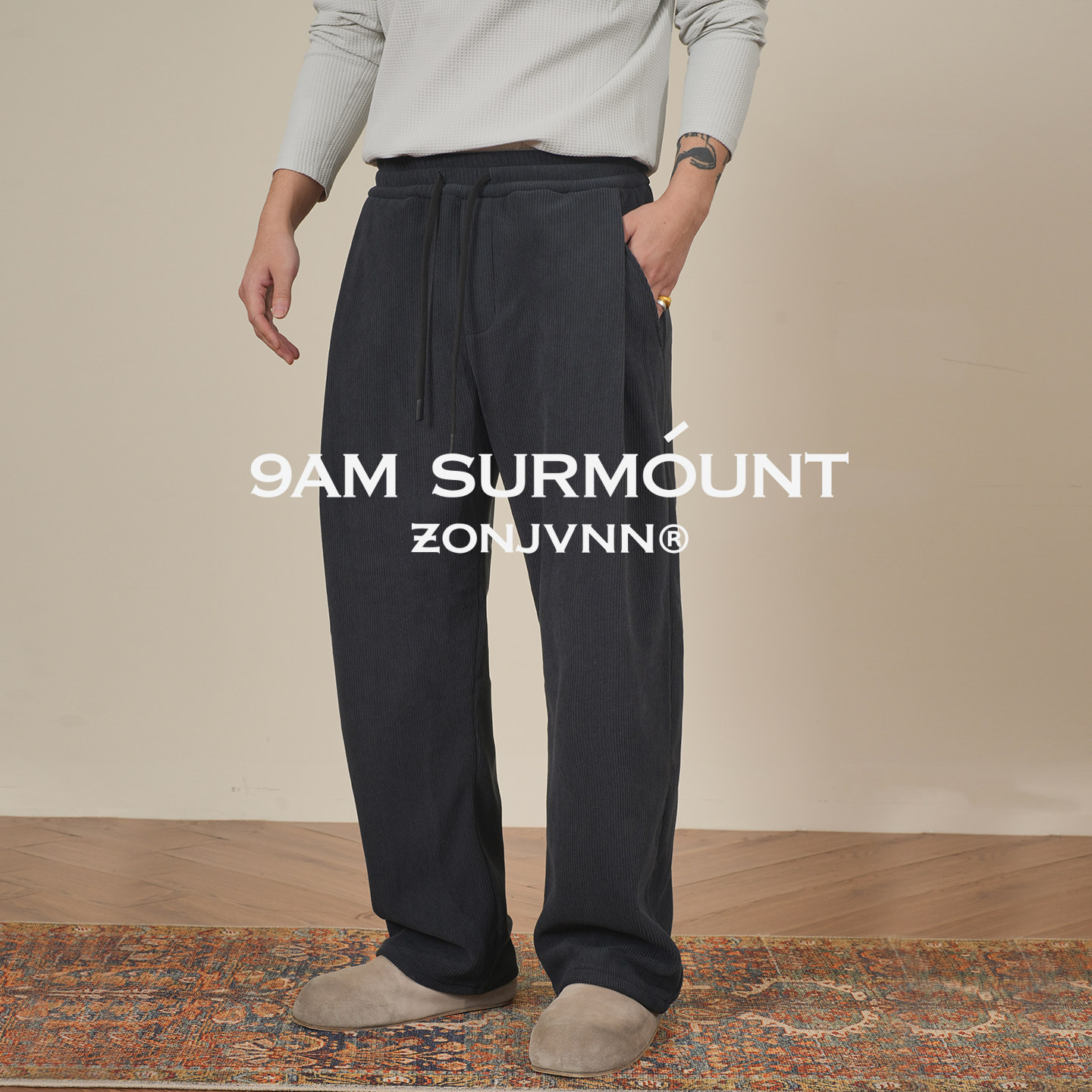 ZONJVNN corduroy plush 400g trousers anti-static warmth versatile elastic waist drawstring loose drape