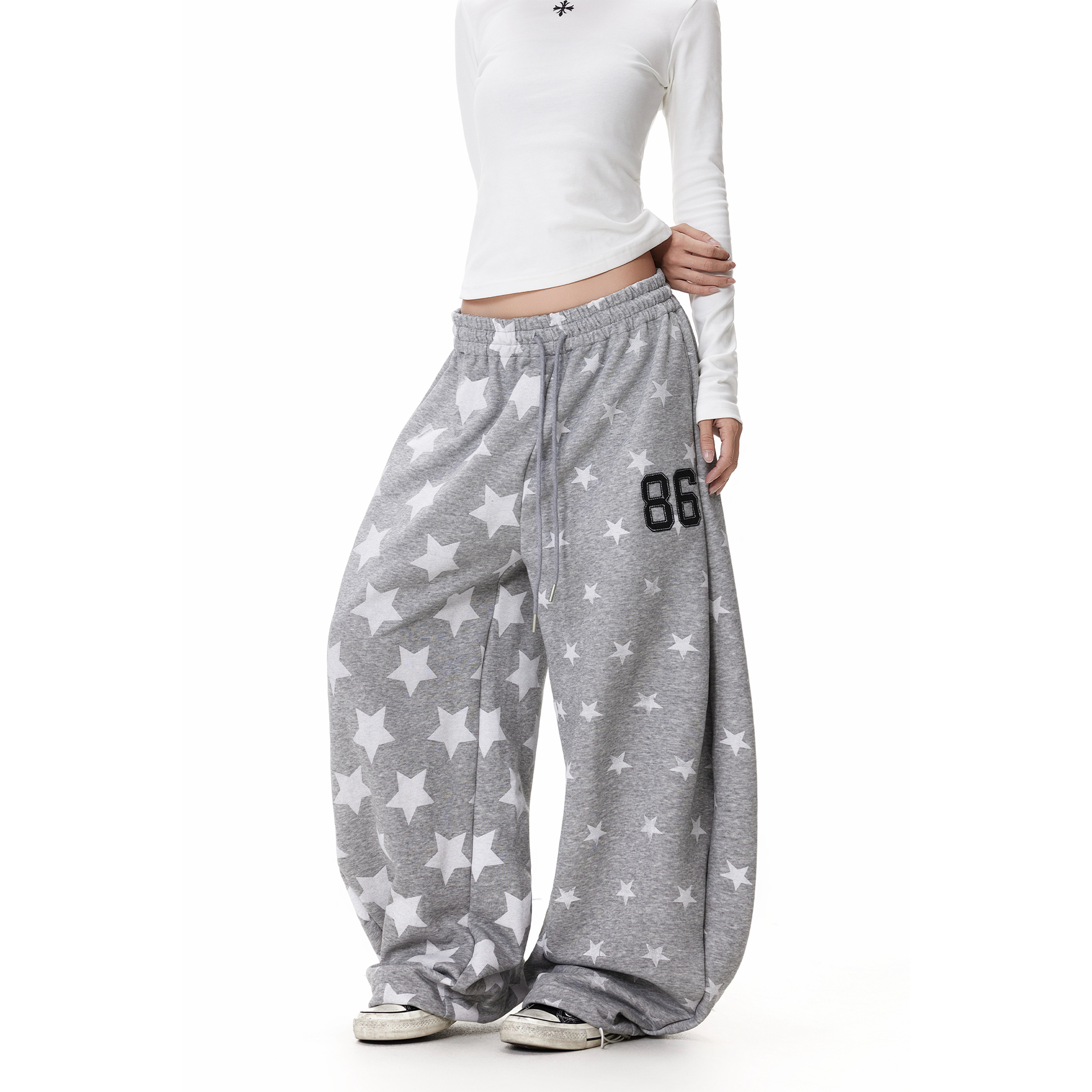 American vintage star full print elastic sweatpants for men and women, loose casual lazy wide-leg drawstring jazz dance pants
