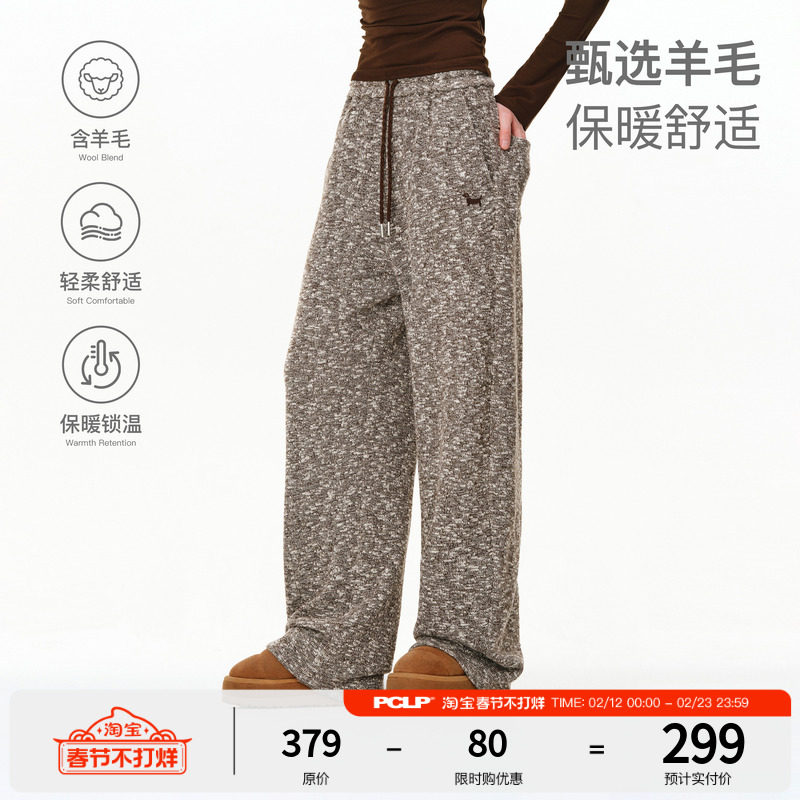 PCLP "Wool Flower Yarn" snowflake terry texture floral gauze sweatpants winter new straight loose drape pants