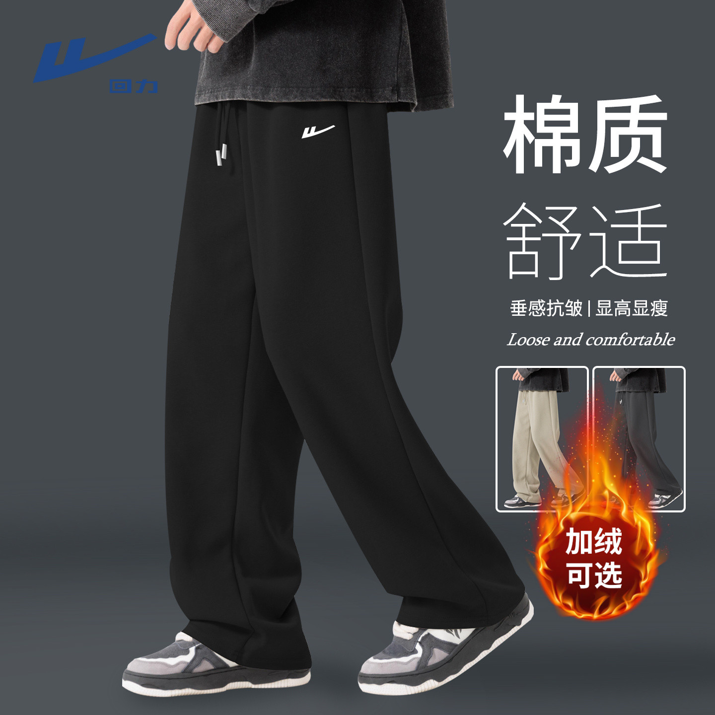Pull-back pants men's autumn and winter new teenage loose casual sweatpants boys plus fleece pants men's sweatpants