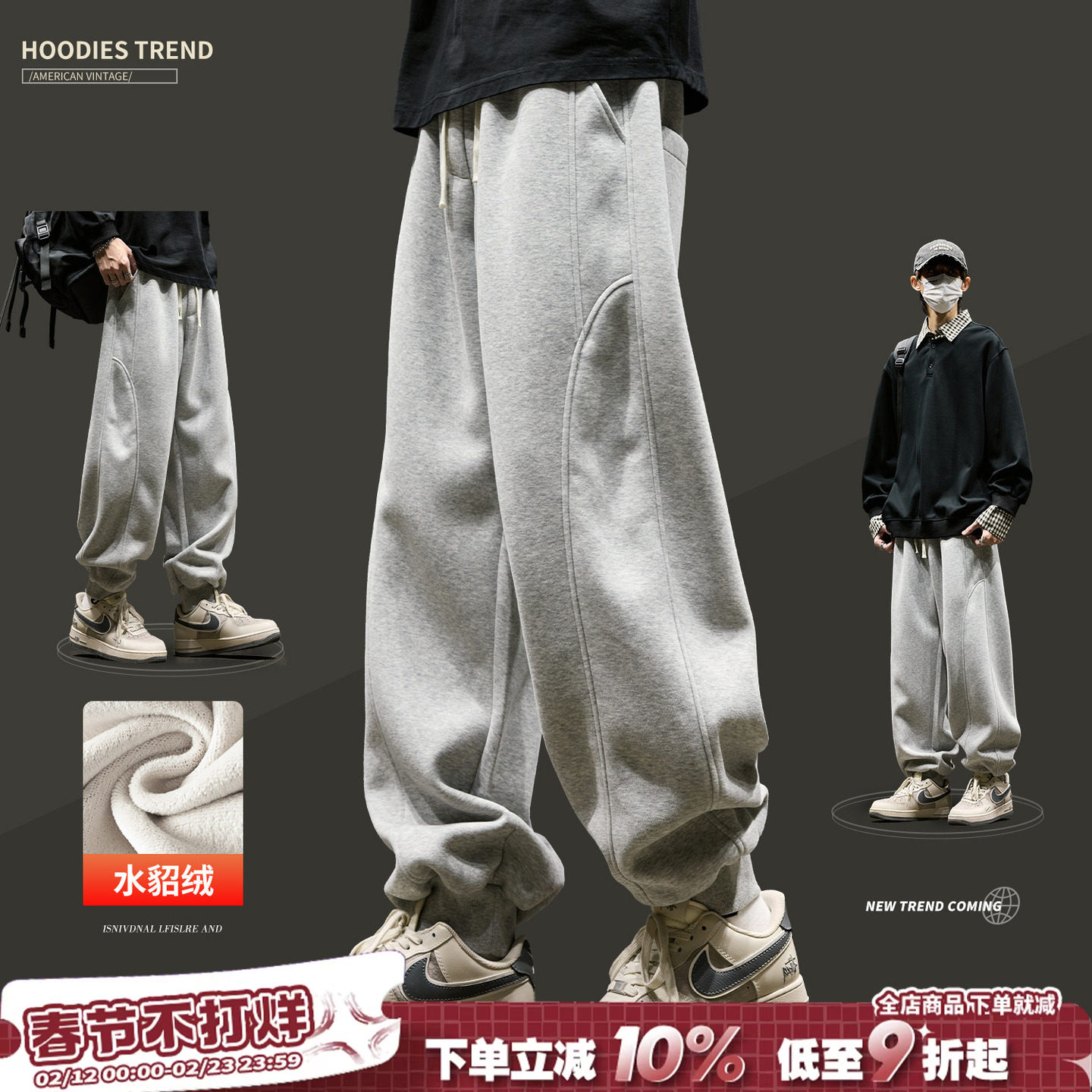 Pair with American gray straight-leg sweatpants, men's sports thickened pants, loose twill fleece slacks, women's autumn and winter