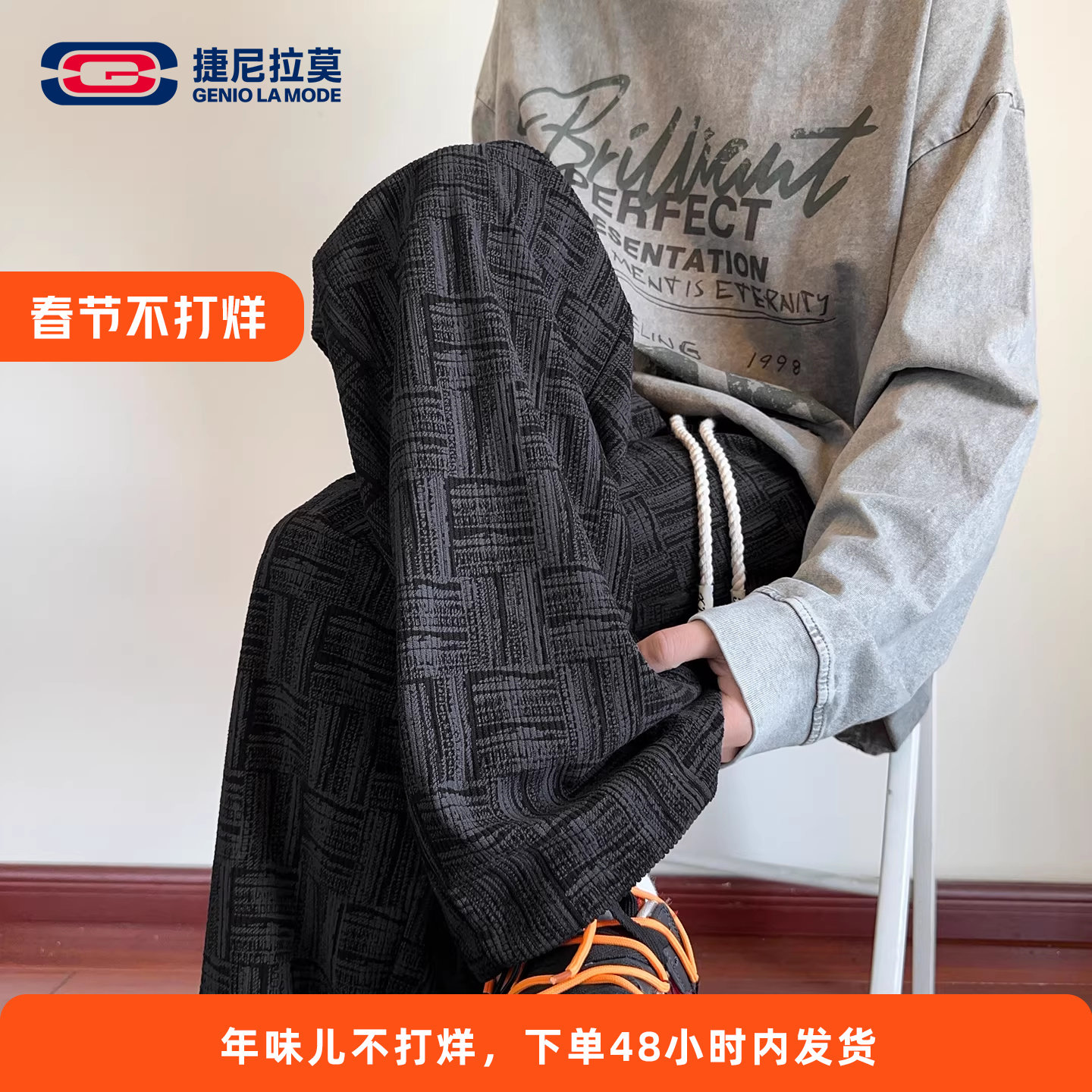 GENIOLAMODE black fleece straight-leg pants men's autumn and winter sports slacks