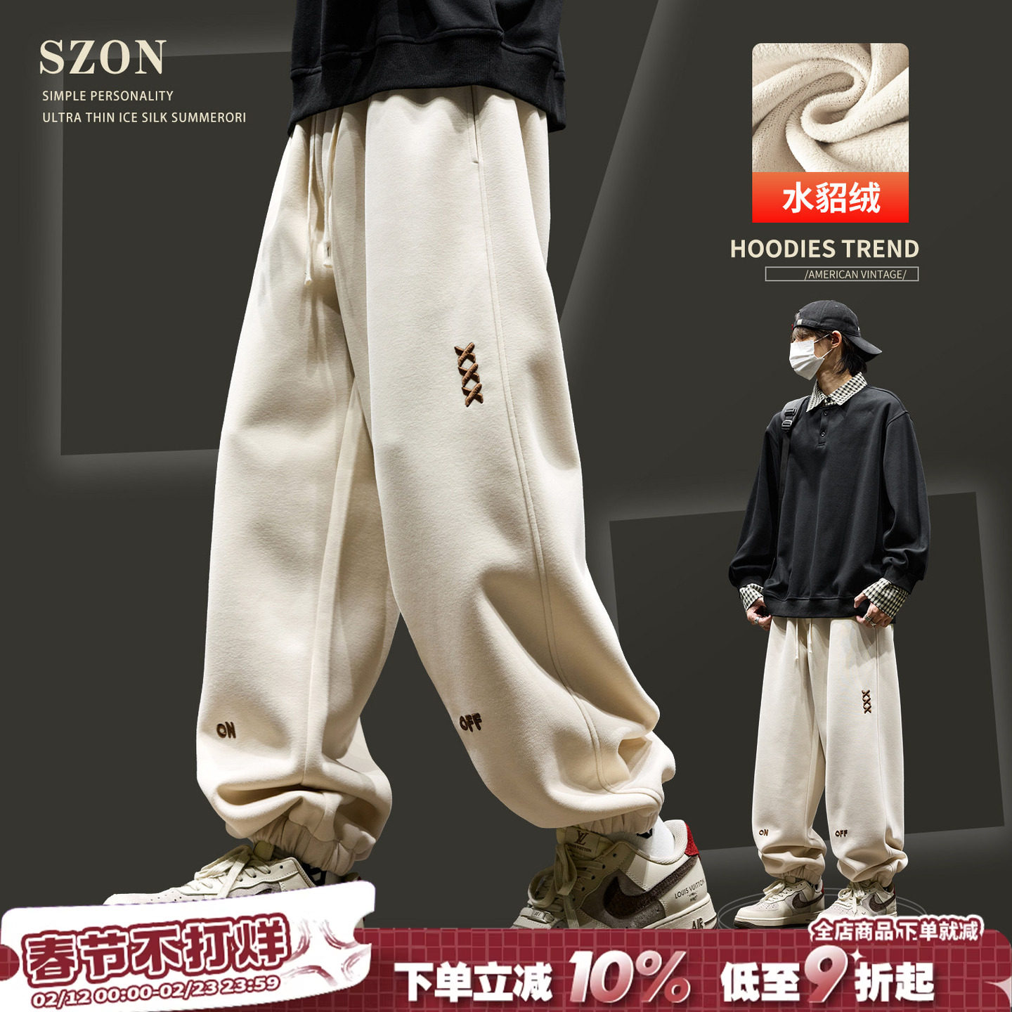 Wang Yibo endorses Zhenwei sweatpants men's autumn and winter fleece thickened casual loose sports trousers for men