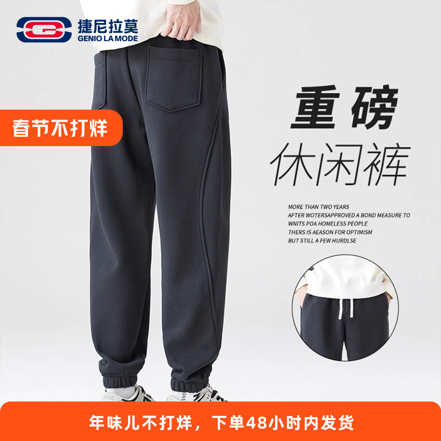 GENIOLAMODE super thick heavy sweatpants men's autumn and winter fleece casual sweatpants