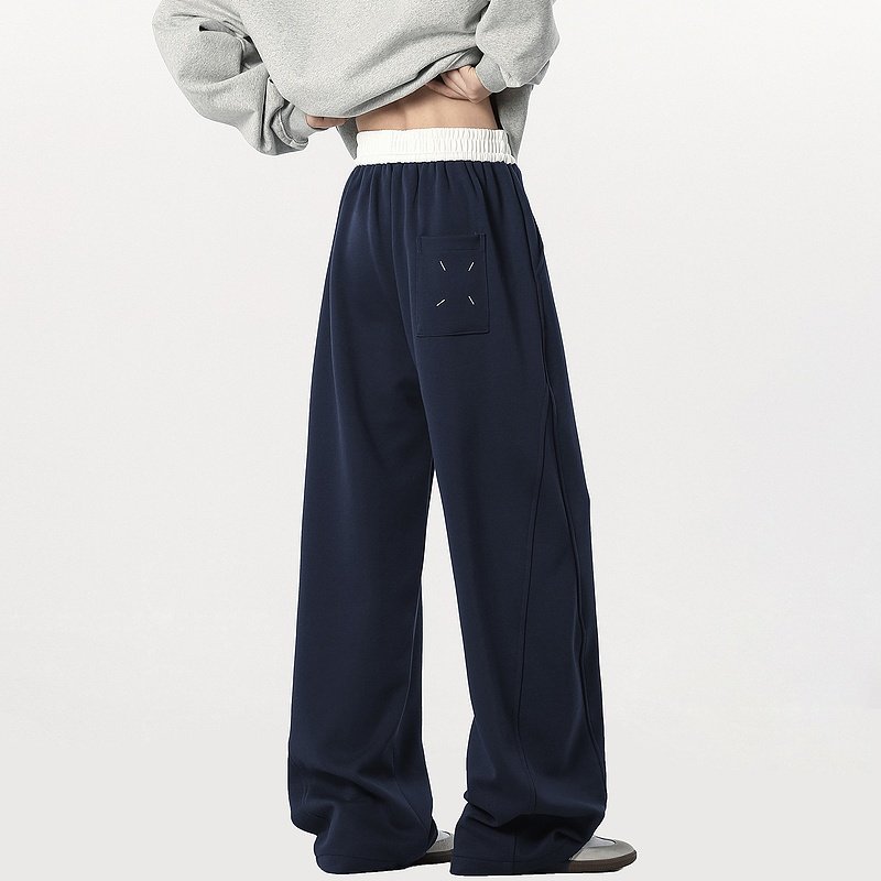 Wukong has trendy brand contrasting design drape scimitar sweatpants for men and women, American loose casual wide-leg sweatpants