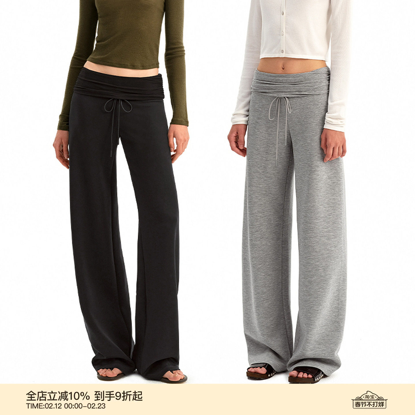 Korean version of retro red drawstring hip wrapping sports shorts women's loose small tall high waist and wide legs slimming casual pants