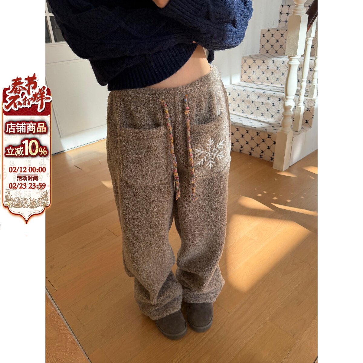 Chuanchuan also thickened lamb wool sweatpants, autumn and winter new men's and women's leg elastic waistband, American loose drawstring slacks