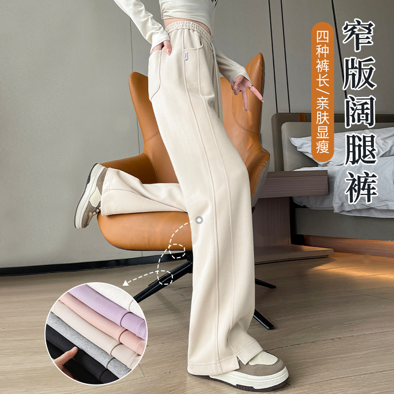 Narrow banana pants, women's spring and autumn models, 2026 new explosive fleece drape straight-leg pants, autumn and winter small wide-leg pants