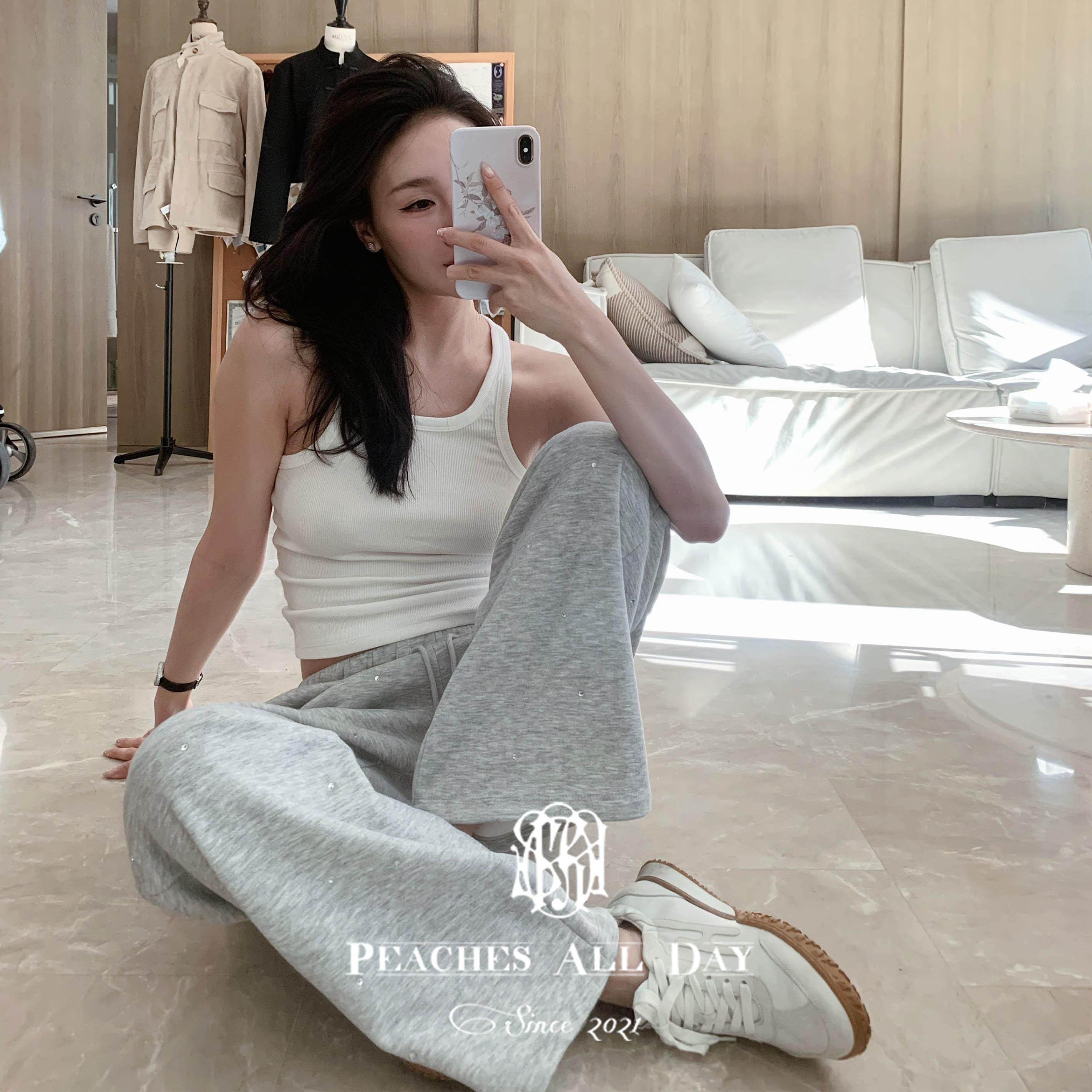 PEACHES ALL DAY D diamond mid-low waist thin fleece maternity friendly and versatile sweatshirt