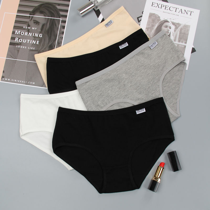 5 pieces of girly simple and comfortable cotton underwear women's student mid-low waist cotton black and white skin color briefs
