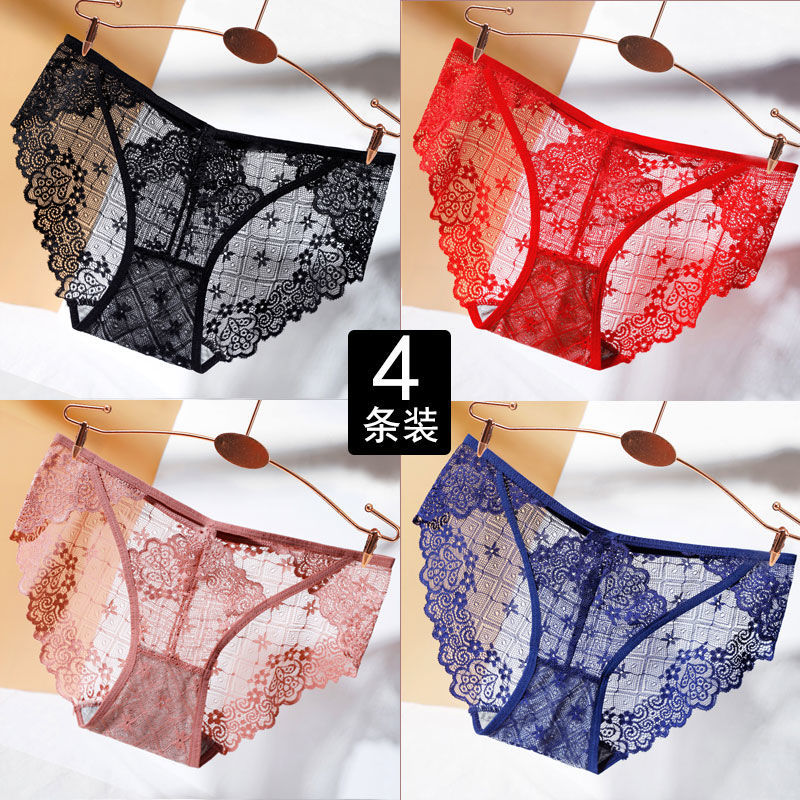 4 pieces of underwear, feminine charm, breathable and hot cotton, antibacterial crotch lace, non-marking transparent low-rise briefs