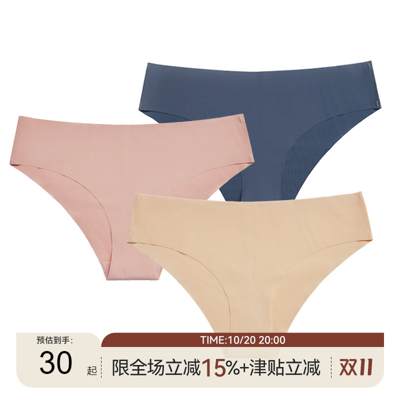 AlphaGym Two Pairs of Ice Silk Seamless Sports Panties Low Waist One Piece Half Hip Covering Triangle Panties Women