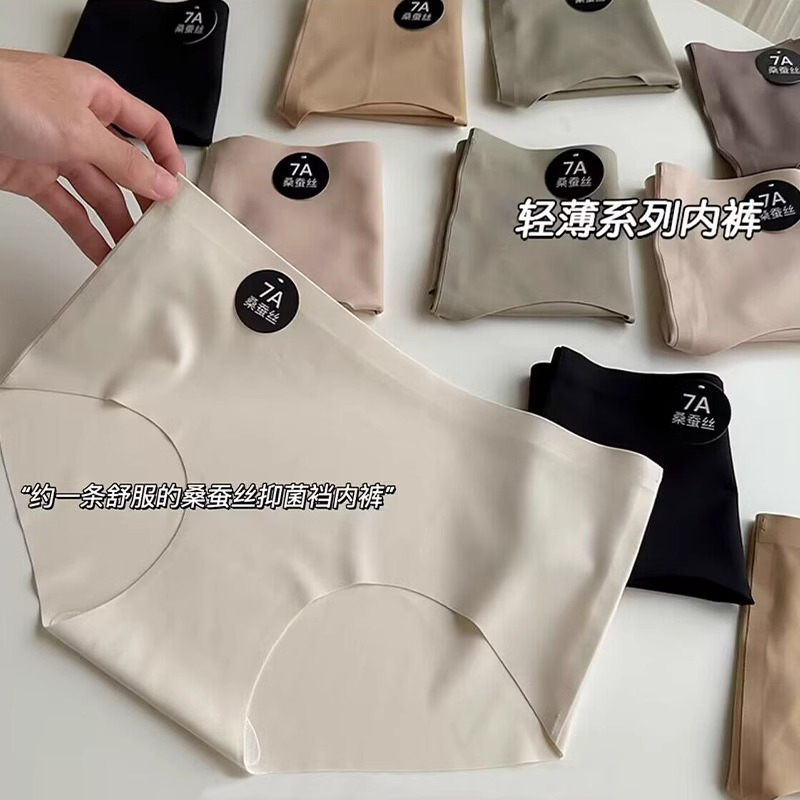 Upgraded version of 7A antibacterial yoga women's underwear mulberry silk bottom mid-rise seamless summer skin-friendly simple briefs