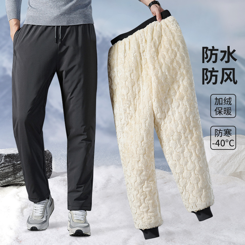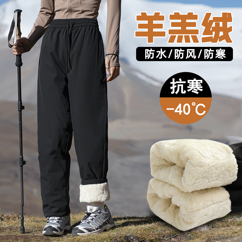 Northeast warm cotton pants for men with fleece in winter and thickened lambswool pants for women who are waterproof and windproof and cold-proof ski assault pants