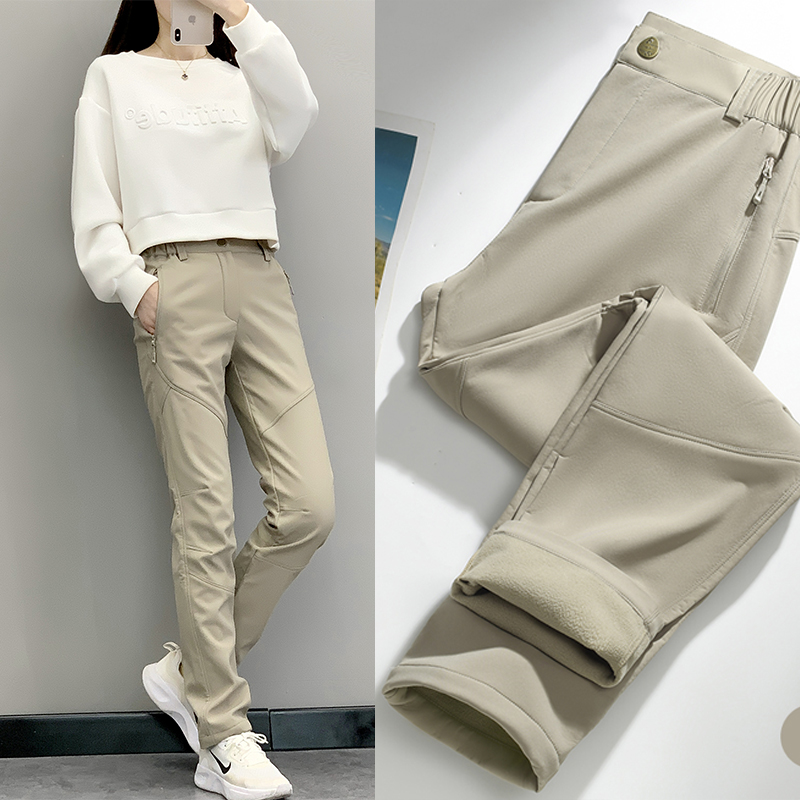 Outdoor jacket pants, men's fleece thickening, winter windproof waterproof, plus size warm, travel hiking pants, spring and autumn