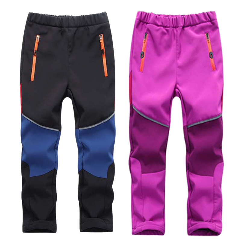 New Kids Softshell Outdoor Assault Pants for Boys and Girls Fleece Thickened Windproof Waterproof Ski Breathable Sweatpants for Boys and Girls