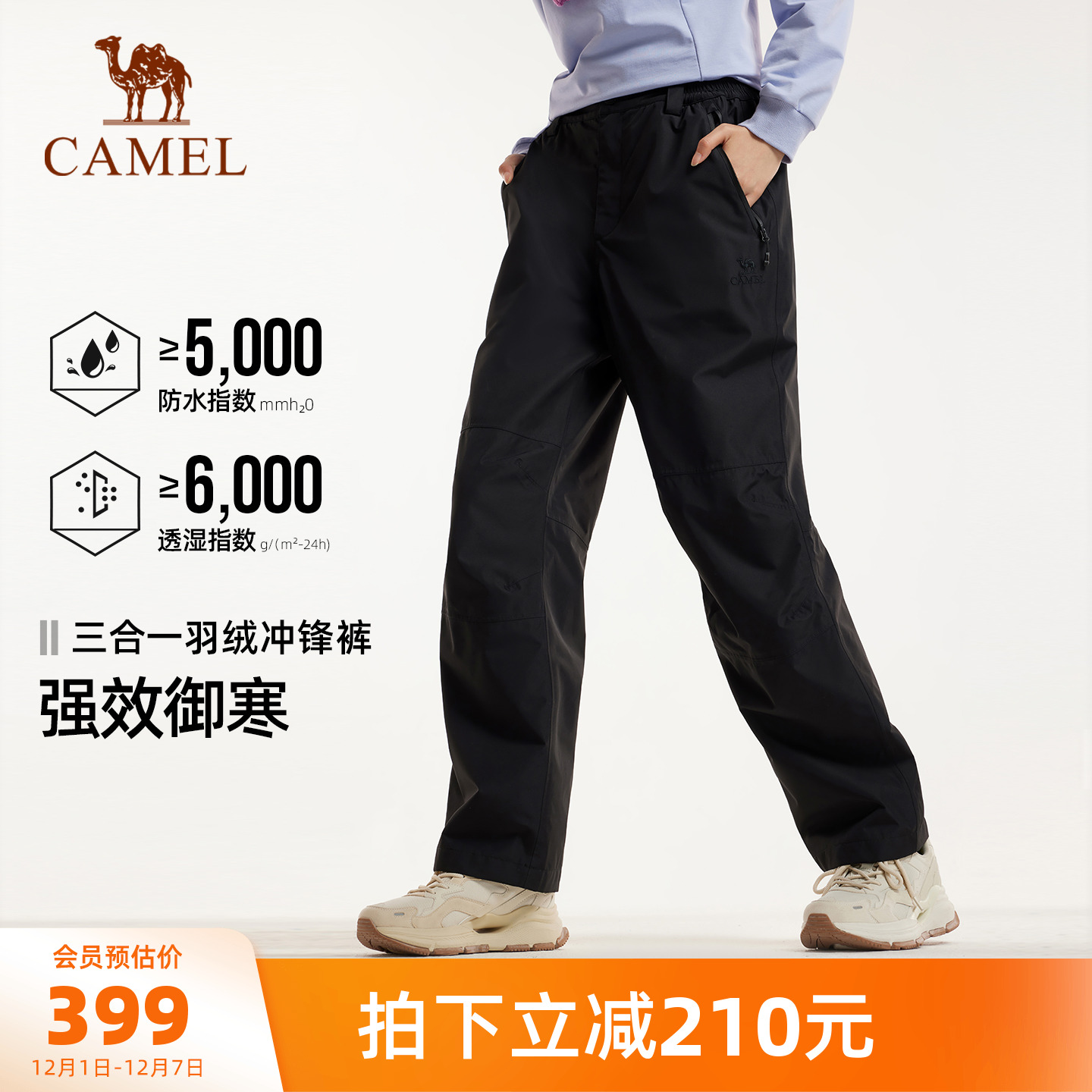 Camel outdoor three-in-one assault pants for women 25 autumn and winter waterproof and moisture-permeable and wear-resistant hiking pants for men