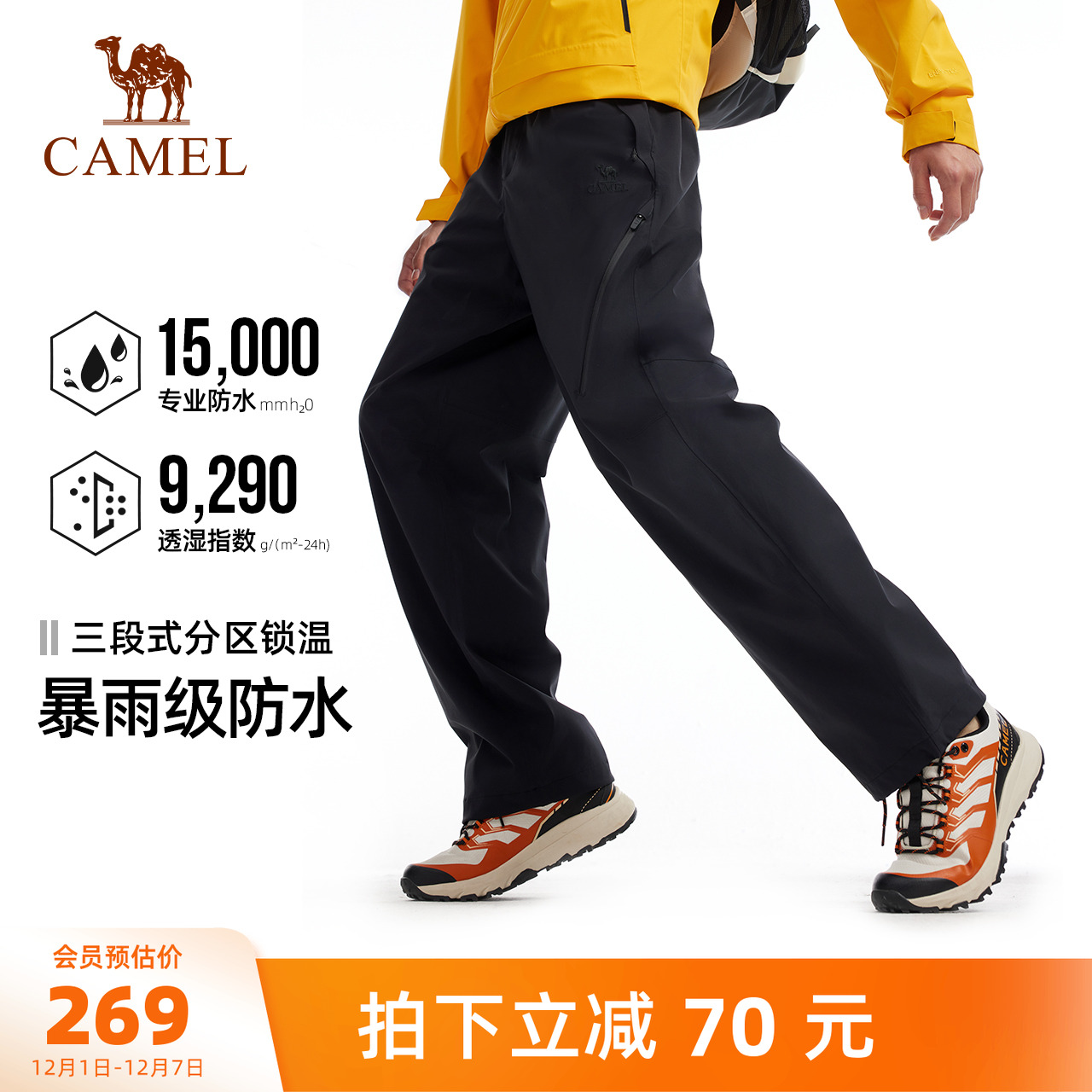 Camel outdoor assault pants, men, autumn and winter, windproof, waterproof, moisture-resistant, wear-resistant, tear-resistant, hiking, mountaineering, soft-shell trousers, women