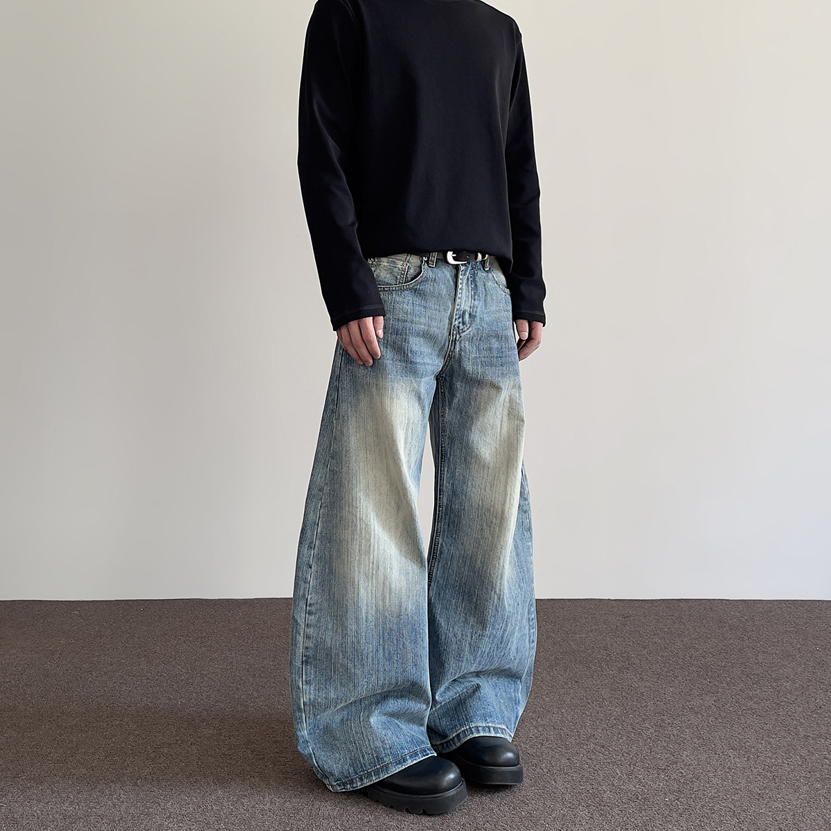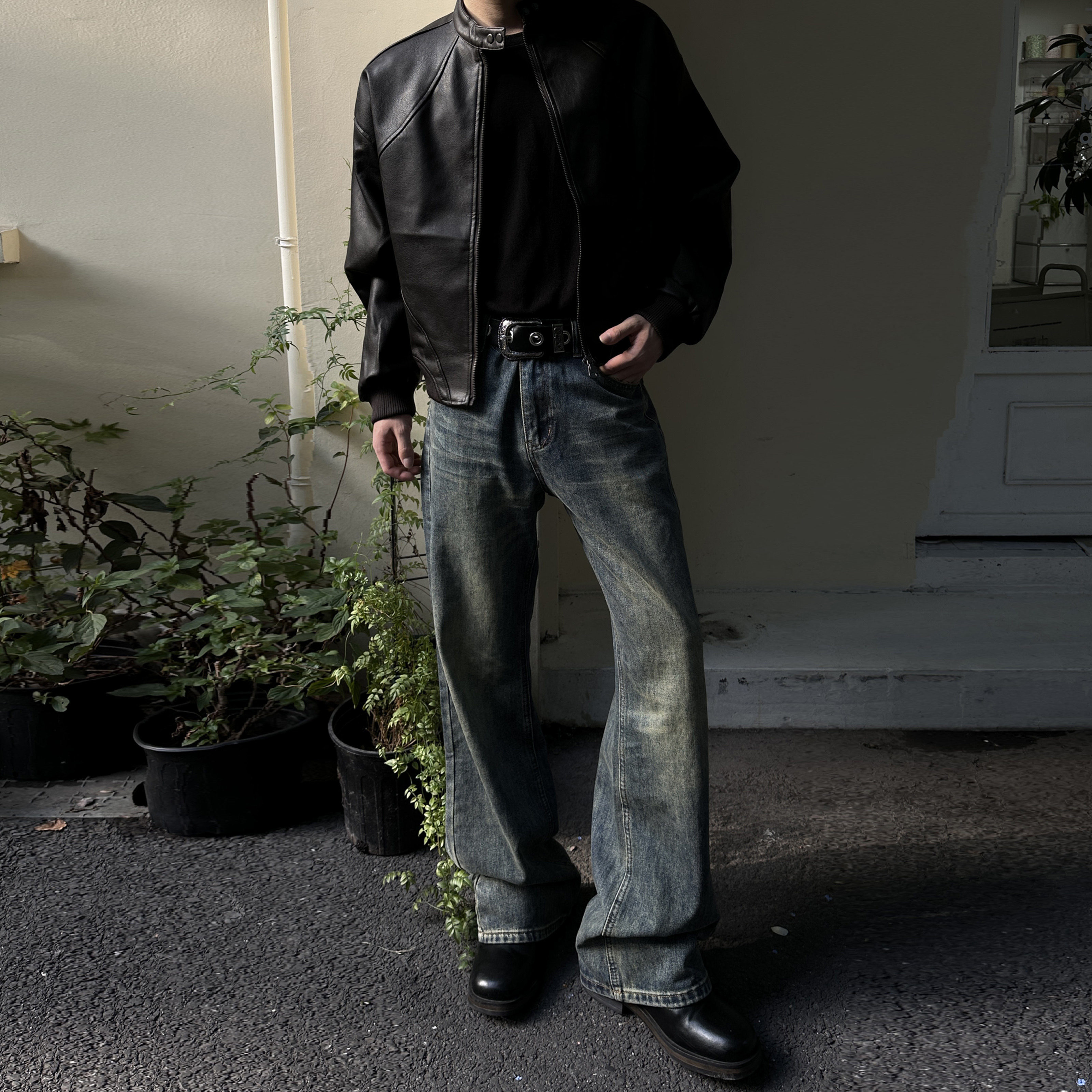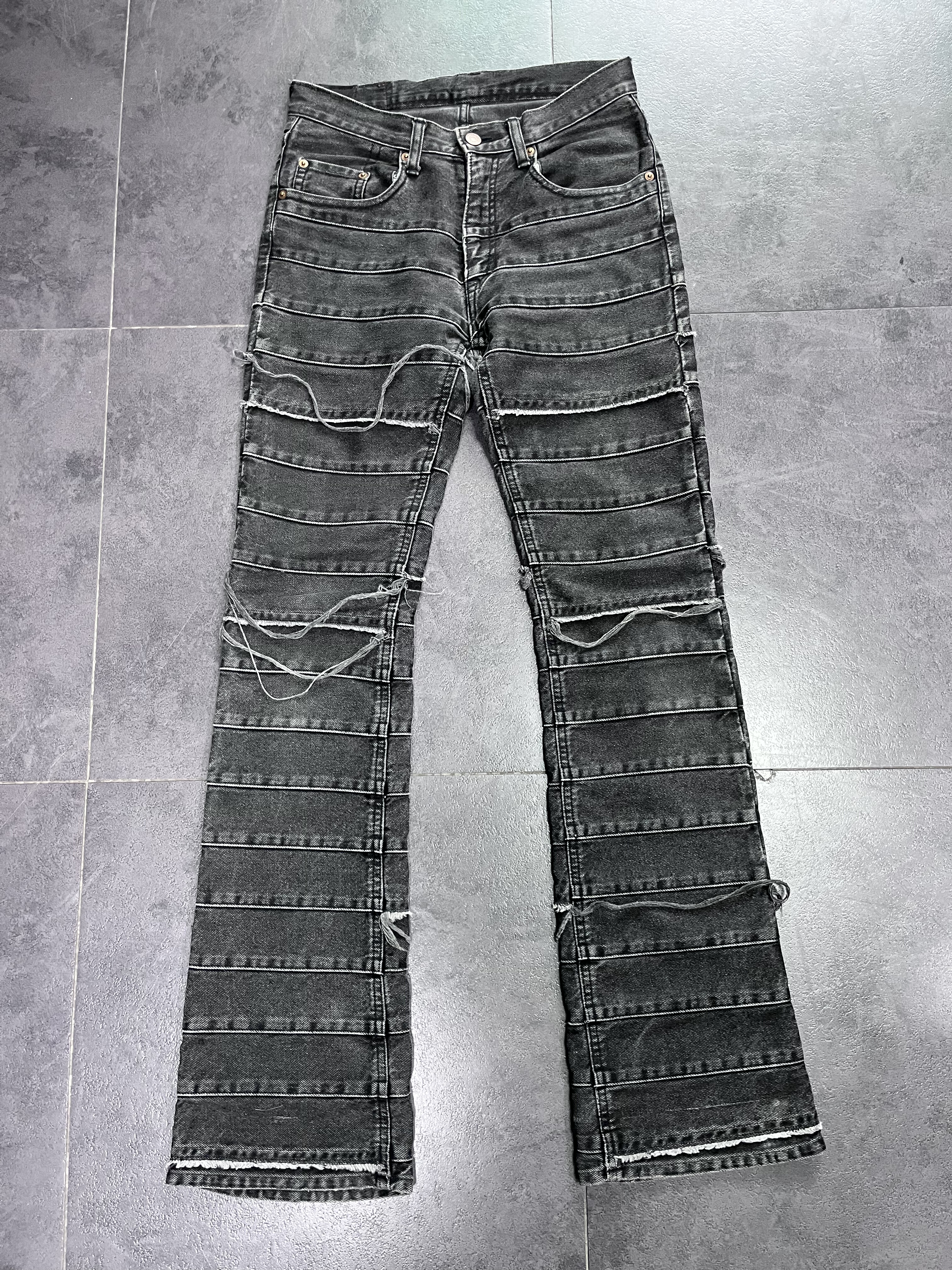 A PUEE American high street cleanfit bamboo knot distressed scimitar jeans men's straight cut silhouette long pants