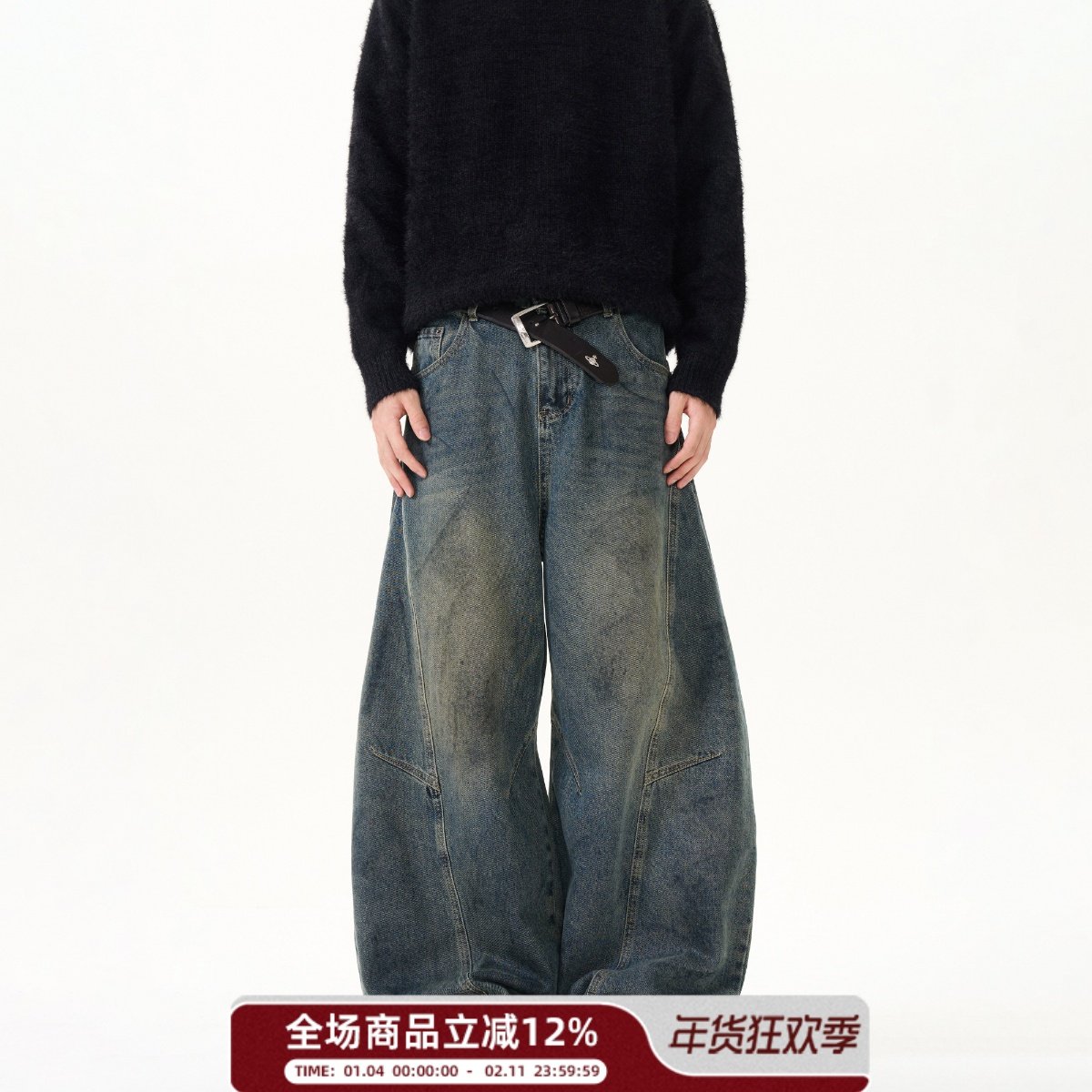 American heavyweight, deconstructed streamer cargo jeans, men's and women's winter trend brands, high street brands, large pockets, loose ripped long pants