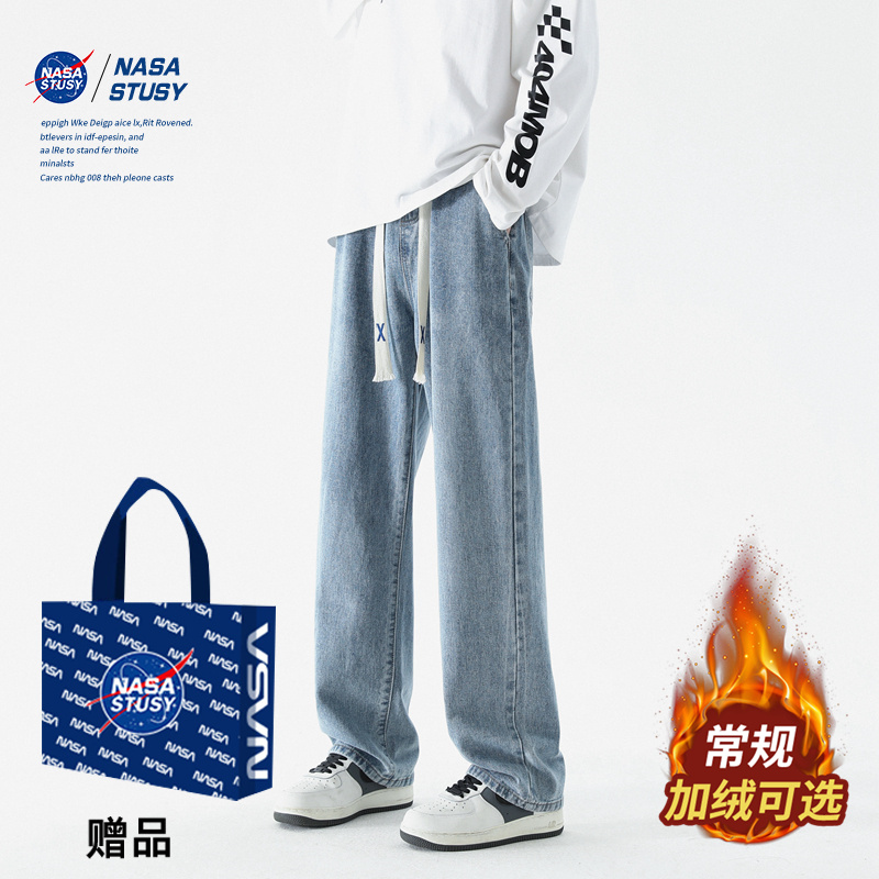 NASA STUSY American High Street Loose Straight Jeans 2025 New Spring and Autumn Men's Casual Long Pants