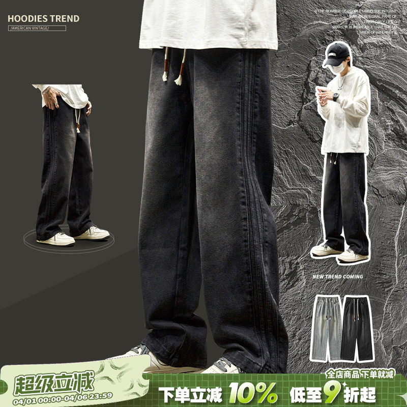 Pull-back jeans men's spring 2026 new American retro straight leg loose wide-leg men's casual trousers