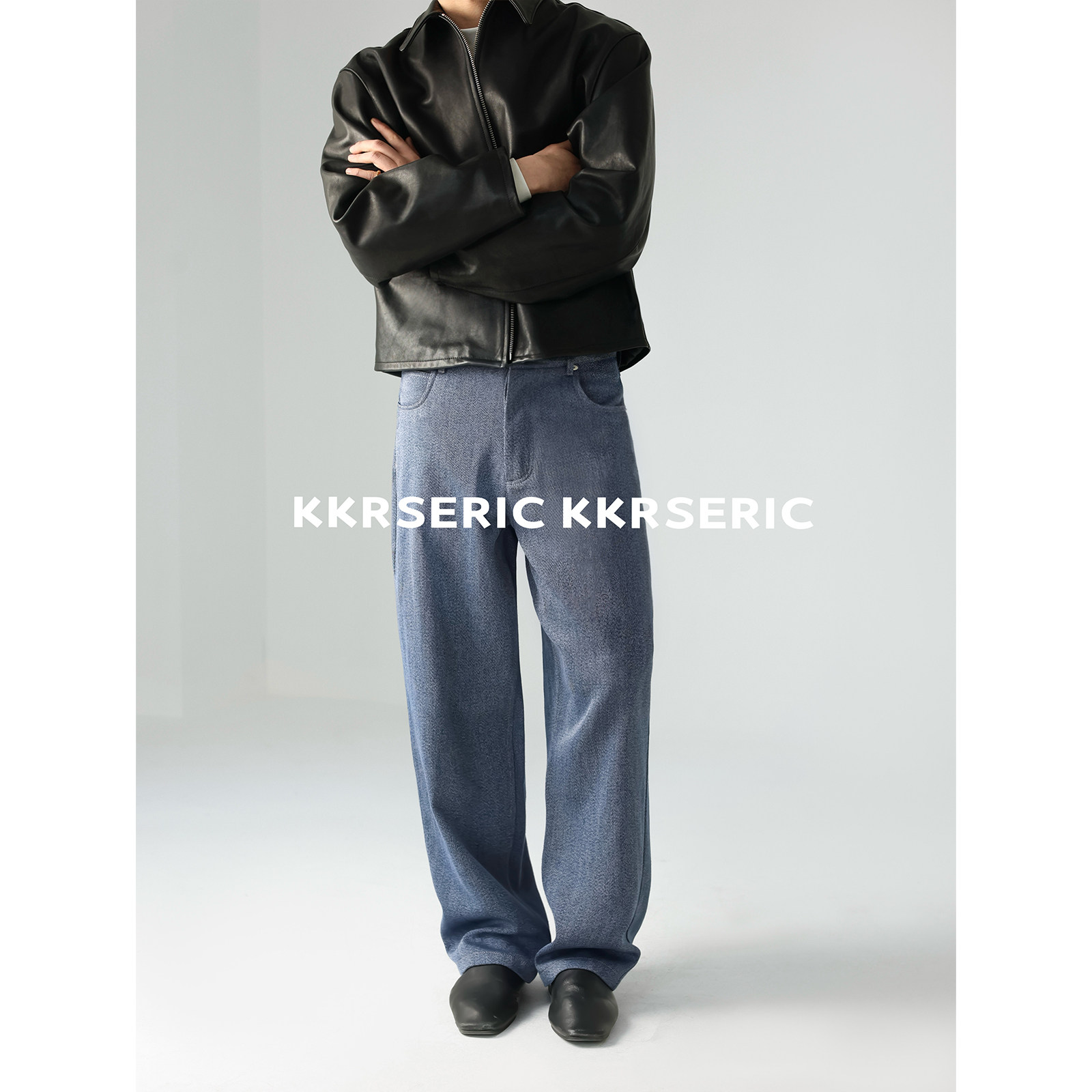 SEE [Lei Songran same style] retro washed old cat beard jeans men's autumn and winter rivet design wide-leg pants