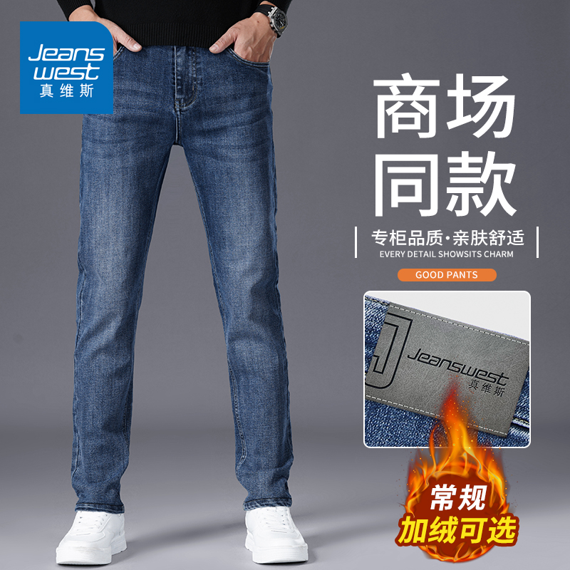 True Vista fleece jeans men's 2025 new autumn/winter straight-leg pants loose men's wide-leg pants men's long pants
