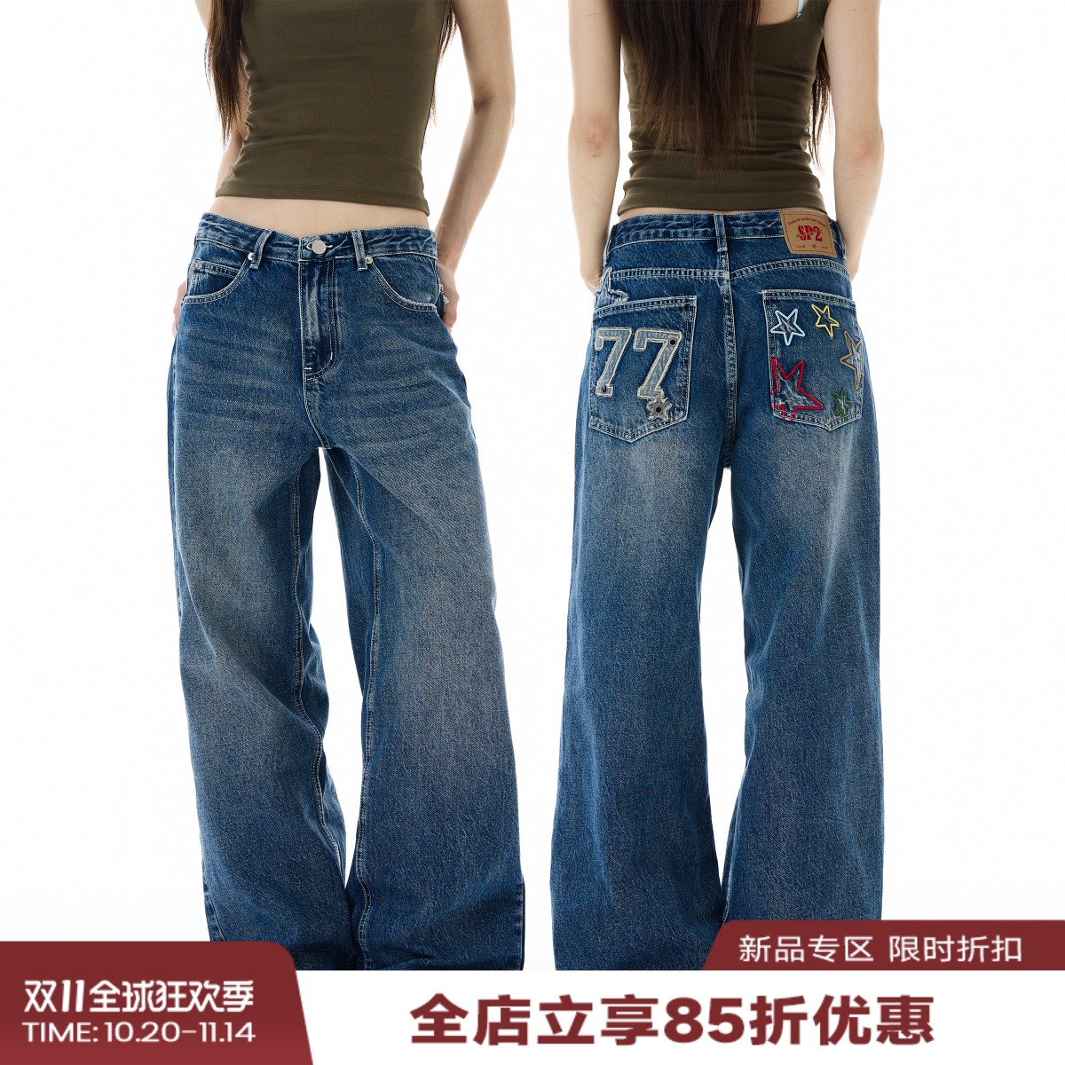 Tailang's shop, American high street straight leg loose wide-leg jeans, men's and women's design patch pants, couple trendy brand