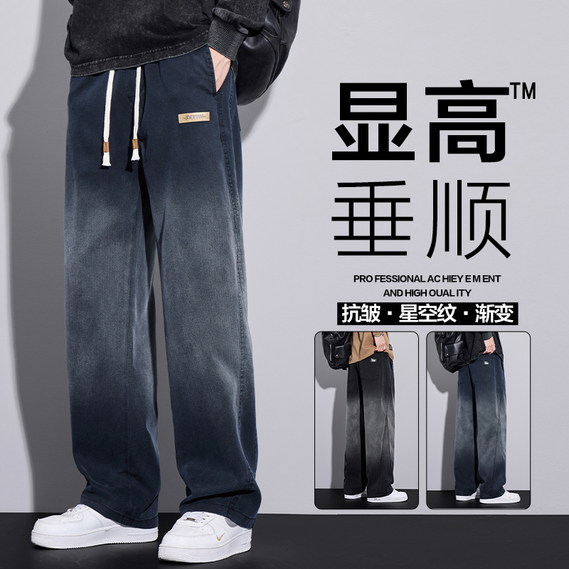 Starry sky pattern gradient jeans men's 2025 autumn/winter American high street loose straight fleece casual pants trendy brand