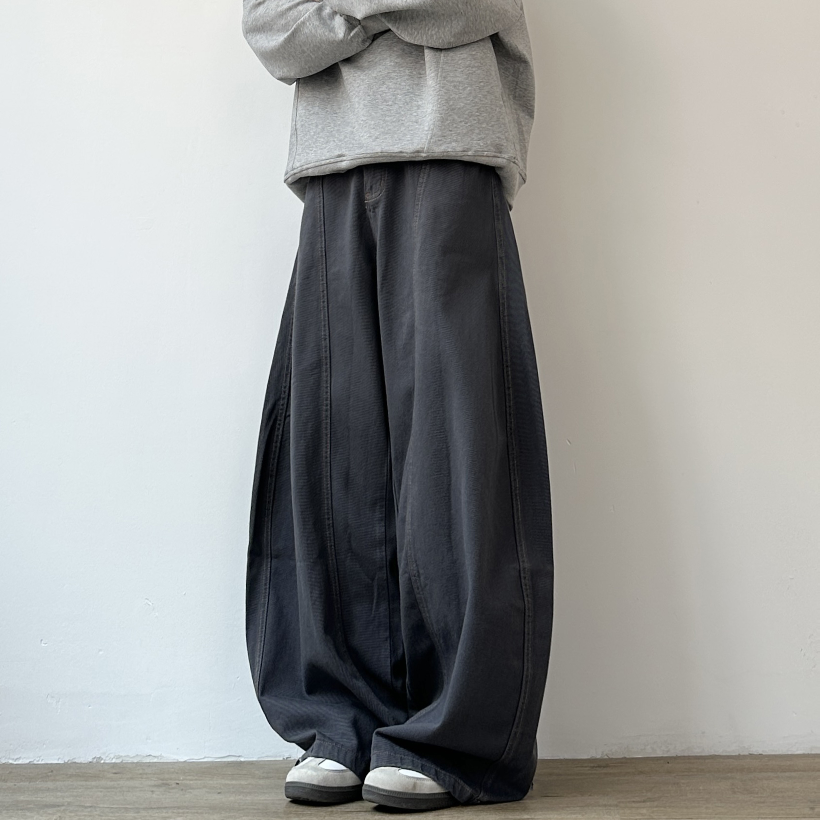 JOYZONE Japanese washed distressed gray jeans men's spring and autumn loose casual versatile wide-leg scimitar trousers