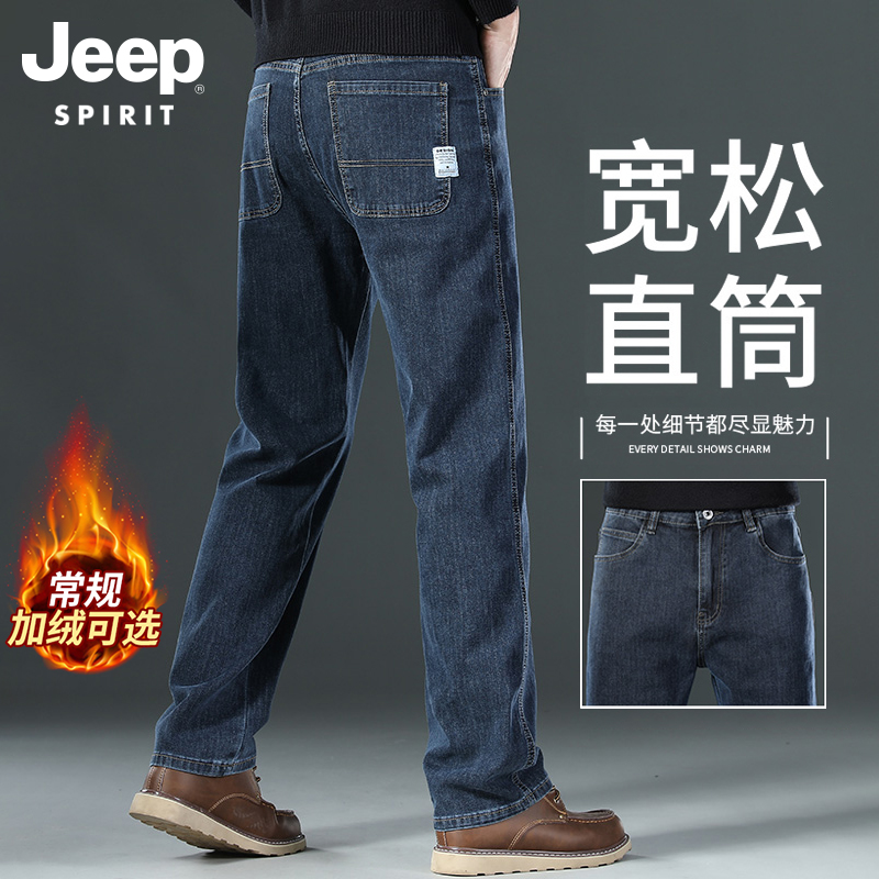 Jeep official straight men's jeans men's new pants dad thickened men's pants fall and winter fleece men's clothing
