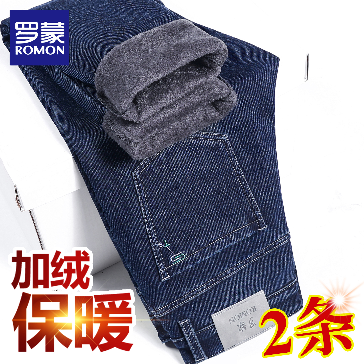 Lomond fleece thickened jeans men's autumn and winter thick stretch slim straight men's pants 2025 new warm trousers