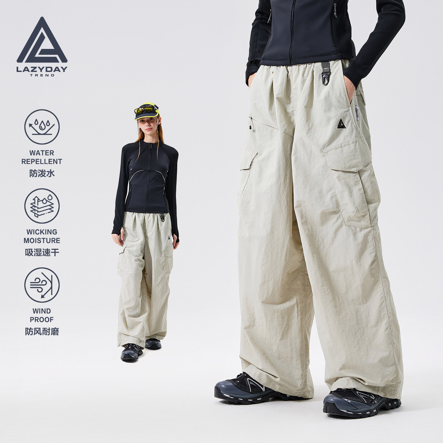 LAZY DAY outdoor lightweight three-repellent quick-drying hiking pants women's Oversized style hiking cargo pants