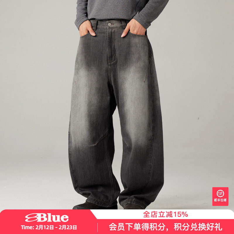 Blue Monte washed vintage distressed over-color jeans loose casual trend structure scimitar pants for men