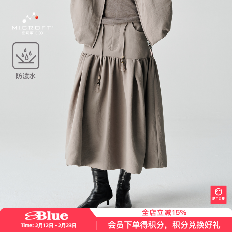 Lanqi water-repellent flower bud skirt women's spring 2026 new comfortable, breathable, dense and soft casual pleated skirt