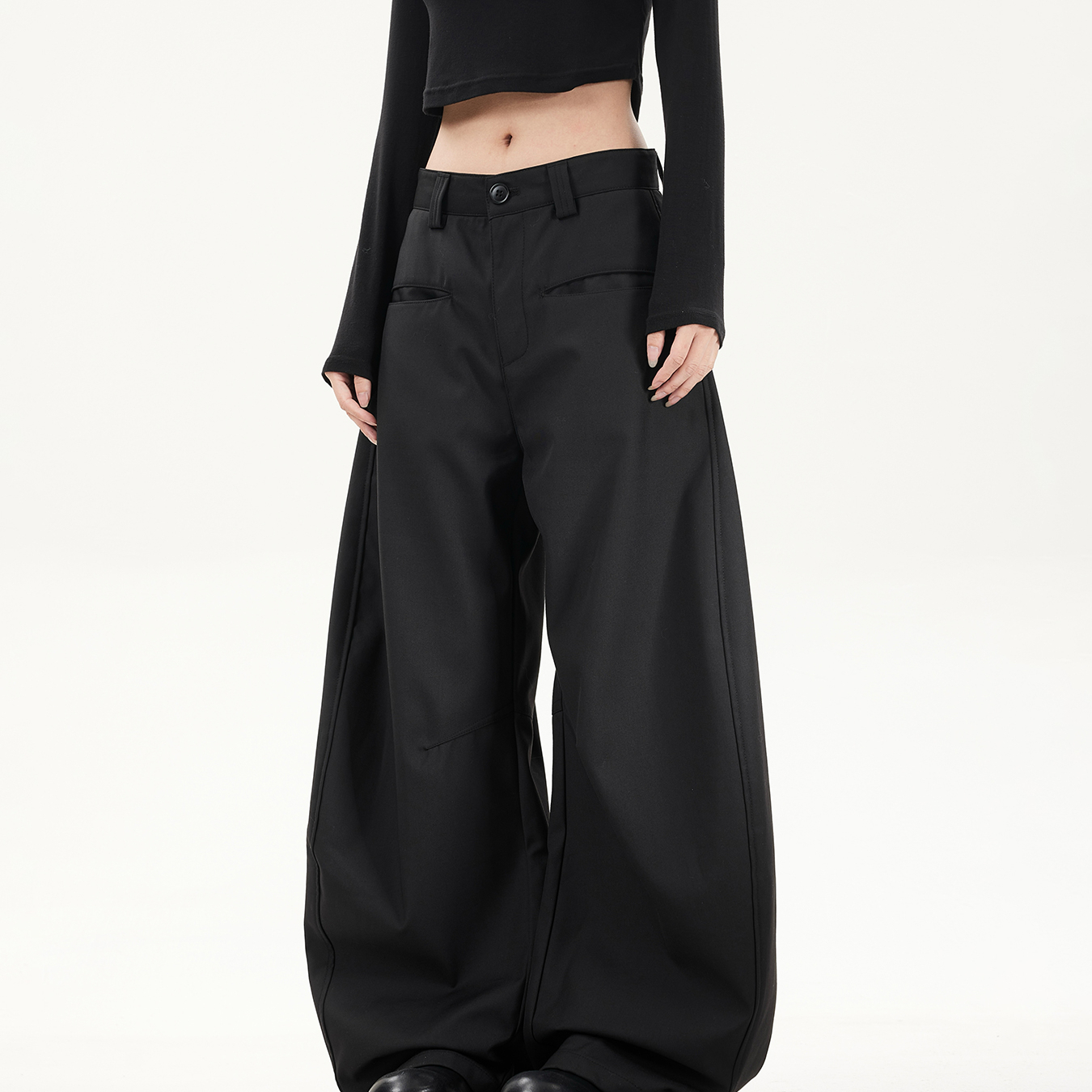 American retro high-end black draped casual trousers for men and women, niche trendy brand loose straight wide-leg scimitar pants