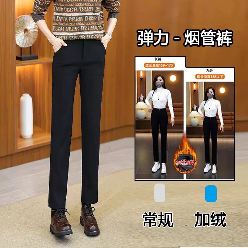 Fleece stretch pipe pants women's autumn and winter new high-waisted slimming suit pants are versatile small straight-leg casual women's pants