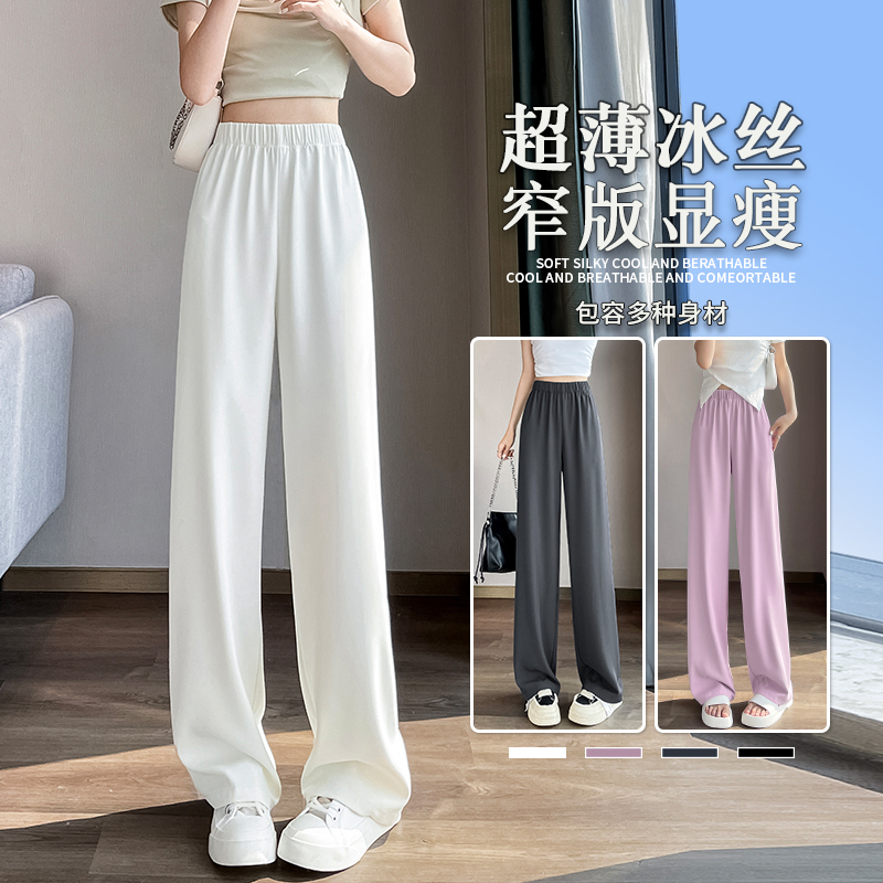 Ice silk suit wide-leg pants, women's summer thin high-waisted drape casual pants, white small man sunscreen cool pants