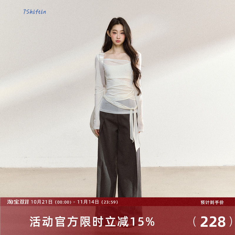 7Shiftin original design dark gray loose straight trousers New drape high-end casual pants