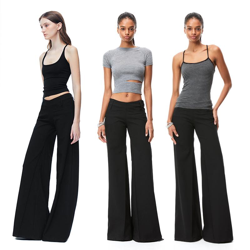 KVKV black low-rise slim V-shaped trousers American hot girl retro casual slimming wide-leg spread pants girl