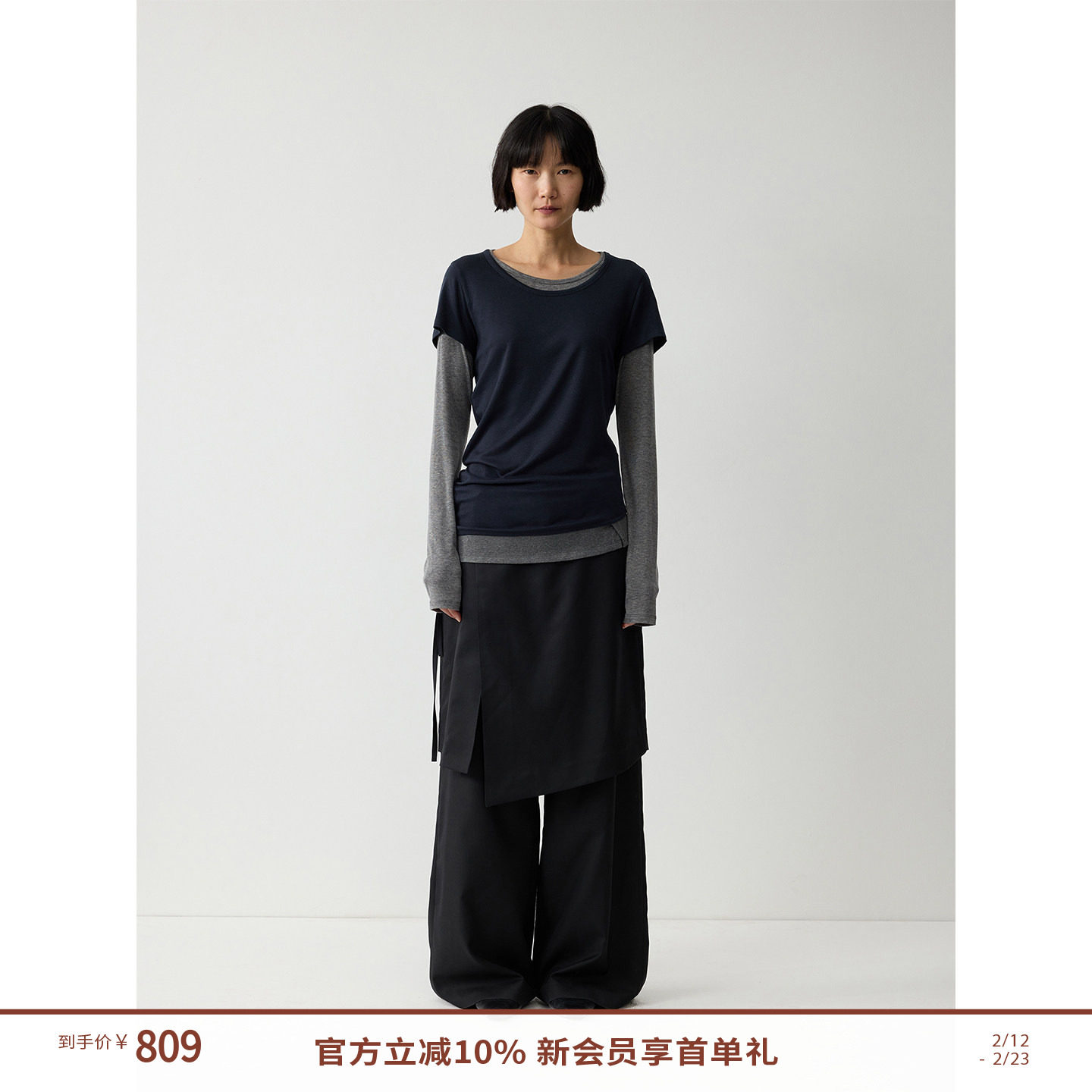 RandomPiece26 Spring New Product Imitation Wool Blend Fake Two Pieces Design Loose and Crimp Casual Suit Pants