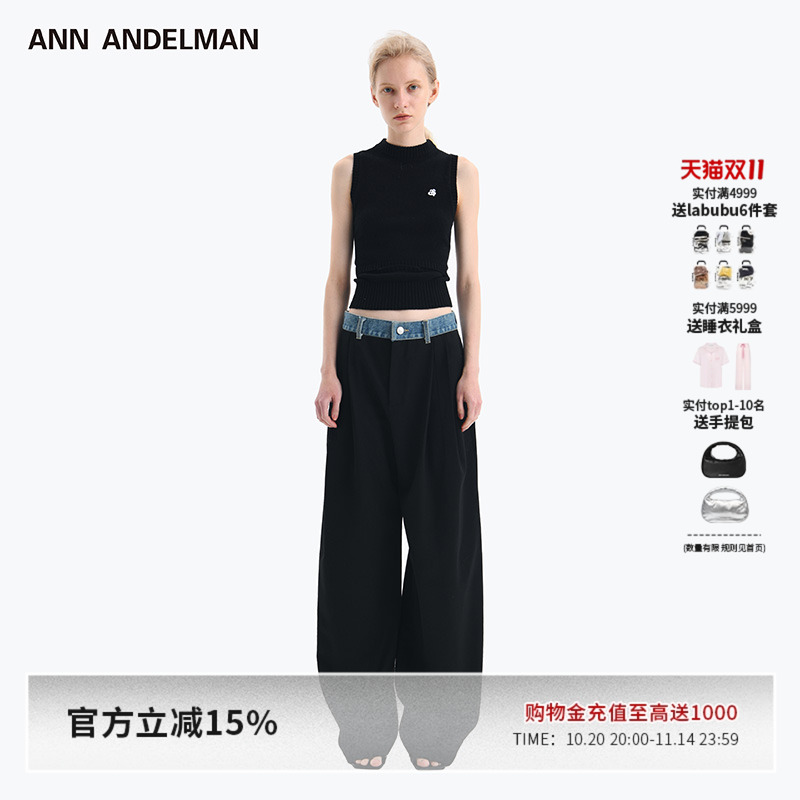 ANN ANDELMAN official direct sales denim waist spliced trousers straight-leg trousers