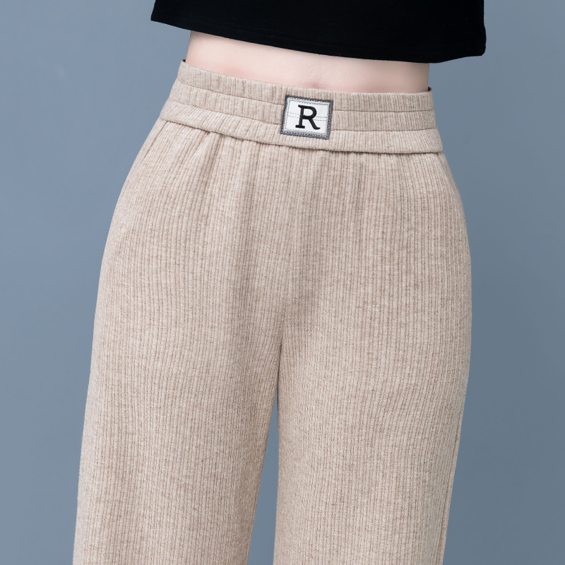Oatmeal chenille wide-leg pants women's 2025 autumn/winter new narrow straight-leg pants high-waisted slimming plush slacks
