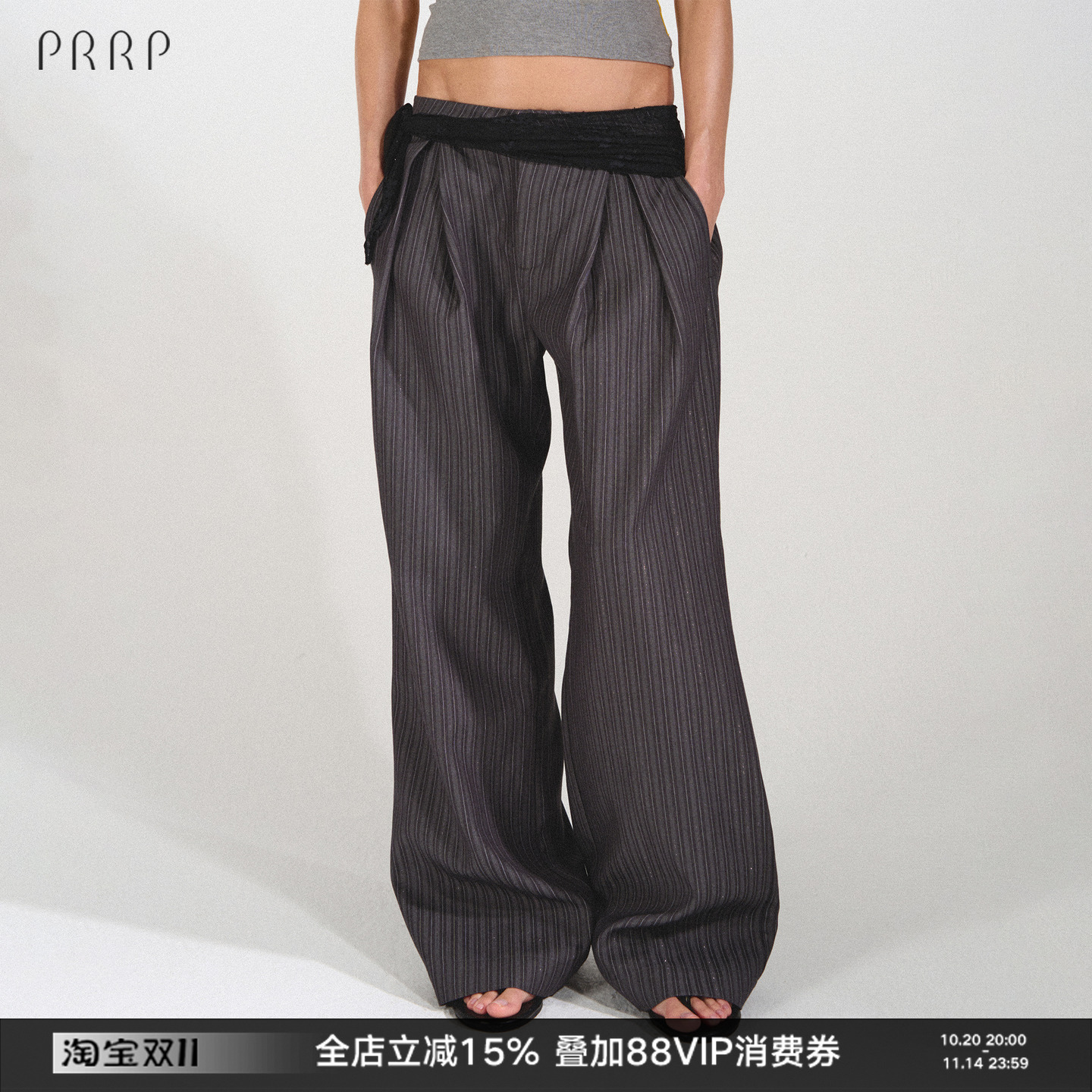 PRRP Original Slack Lace Paneled Supermodel Commuter Striped Casual Trousers